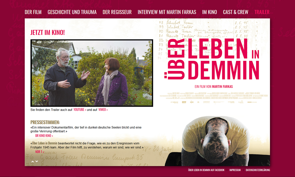 WebDesign Usedom — Der freie Blick aufs Meer Kunde: Salzgeber online: 04/18 — 03/20 Über Leben in Demmin Kunde: Salzgeber online: 02/18 — 03/20 Queerfilmnacht Kunde: Salzgeber online: 01/18 — 01/20 Queercore Kunde: Salzgeber online: 11/17 — 05/18 120 bpm Kunde: Salzgeber online: 10/17 — 05/18 Die Misandristinnen Kunde: Salzgeber online: 10/15 — 05/18 God’s Own Country Kunde: Salzgeber online: 09/17 — 08/20 Conny Plank — The Potential OfNoise Kunde: Salzgeber online: 08/17 — 05/18 Die Wunde Kunde: Salzgeber online: 08/18 — heute Mein WunderbaresWest-Berlin Kunde: Salzgeber online: 05/17 — heute Die vergessene Armee Kunde: Salzgeber online: 05/17 — 04/18 Fünf Sterne Kunde: Salzgeber online: 04/17 — 03/20 Eindeutsches Leben Kunde: Salzgeber online: 03/17 — heute Europa —Ein Kontinentals Beute Kunde: Salzgeber online: 01/17 — heute King Cobra Kunde: Salzgeber online: 12/16 — 05/18 Sissymag Kunde: Salzgeber online: 12/16 — heute DieFlorence FosterJenkins Story Kunde: Salzgeber online: 11/16 — heute Ediths Glocken Kunde: Salzgeber online: 10/16 — 05/18 Théo & Hugo Kunde: Salzgeber online: 10/16 — 05/18 Landstück Kunde: Salzgeber online: 03/16 — 12/23 Freistatt Kunde: Salzgeber online: 02/15 — 05/18 Lichtes Meer Kunde: Salzgeber online: 11/15 — 10/17 Herr von Bohlen Kunde: Salzgeber online: 10/15 — 05/18 Eisensteinin Guanajuato Kunde: Salzgeber online: 10/15 — 05/18 Finca Galdent Kunde: Dr. M. Ebbinghaus online: 10/15 — 09/19 Von jetzt ankein zurück Kunde: Salzgeber online: 02/15 — 01/17 Get Kunde: Salzgeber online: 01/15 — 02/16 der Kreis Kunde: Salzgeber online: 09/14 — 05/18 Usedom — Der freie Blick aufs Meer Kunde: Salzgeber online: 04/18 — 03/20 Über Leben in Demmin Kunde: Salzgeber online: 02/18 — 03/20 Queerfilmnacht Kunde: Salzgeber online: 01/18 — 01/20 Queercore Kunde: Salzgeber online: 11/17 — 05/18 120 bpm Kunde: Salzgeber online: 10/17 — 05/18 Die Misandristinnen Kunde: Salzgeber online: 10/15 — 05/18 God’s Own Country Kunde: Salzgeber online: 09/17 — 08/20 Conny Plank — The Potential OfNoise Kunde: Salzgeber online: 08/17 — 05/18 Die Wunde Kunde: Salzgeber online: 08/18 — heute Mein WunderbaresWest-Berlin Kunde: Salzgeber online: 05/17 — heute Die vergessene Armee Kunde: Salzgeber online: 05/17 — 04/18 Fünf Sterne Kunde: Salzgeber online: 04/17 — 03/20 Eindeutsches Leben Kunde: Salzgeber online: 03/17 — heute Europa —Ein Kontinentals Beute Kunde: Salzgeber online: 01/17 — heute King Cobra Kunde: Salzgeber online: 12/16 — 05/18 Sissymag Kunde: Salzgeber online: 12/16 — heute DieFlorence FosterJenkins Story Kunde: Salzgeber online: 11/16 — heute Ediths Glocken Kunde: Salzgeber online: 10/16 — 05/18 Théo & Hugo Kunde: Salzgeber online: 10/16 — 05/18 Landstück Kunde: Salzgeber online: 03/16 — 12/23 Freistatt Kunde: Salzgeber online: 02/15 — 05/18 Lichtes Meer Kunde: Salzgeber online: 11/15 — 10/17 Herr von Bohlen Kunde: Salzgeber online: 10/15 — 05/18 Eisensteinin Guanajuato Kunde: Salzgeber online: 10/15 — 05/18 Finca Galdent Kunde: Dr. M. Ebbinghaus online: 10/15 — 09/19 Von jetzt ankein zurück Kunde: Salzgeber online: 02/15 — 01/17 Get Kunde: Salzgeber online: 01/15 — 02/16 der Kreis Kunde: Salzgeber online: 09/14 — 05/18 Lassen Sie uns gemeinsam Ihr Projekt ans Ziel bringen! — Kontaktseite 1 2 3
